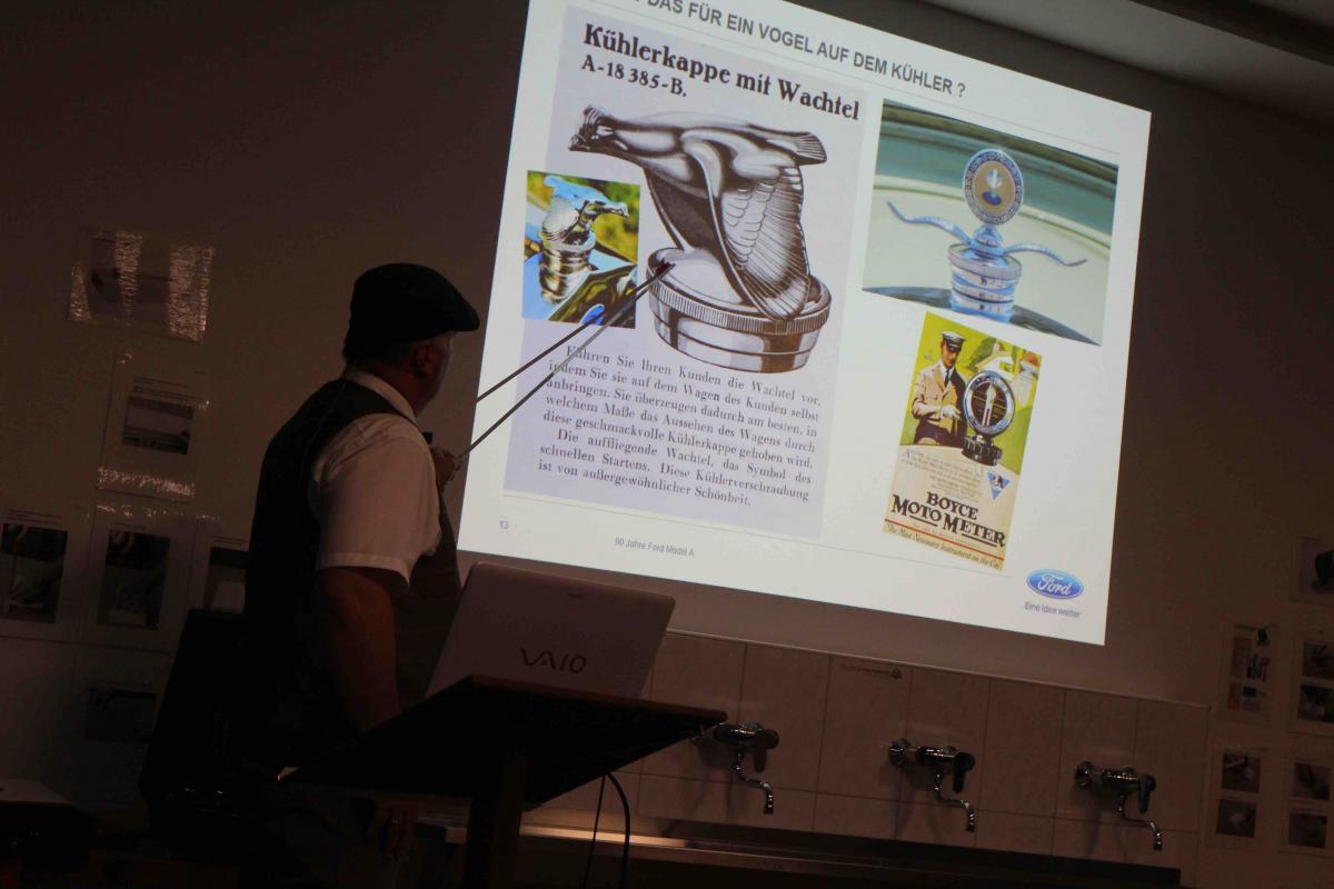 Bis zum letzten Platz gefüllt war auch der im Obergeschoss des Museums platzierte Vortrag von Robert Bröhl (Technikreferent der Ford Model A -IG und Model A Typenreferent der kölner Ford Werke. Bröhl, selbst passionierter Ford A Fahrer und Kenner beleuchtete die Geschichte rund um das A Modell. Für die jungen und jung gebliebenen Besucher wurden nicht nur die beliebten Modelldampfmaschinen, durch die Jugendgruppe des Technikmuseums in Aktion unter Dampf präsentiert, auch die große Garteneisenbahn lud zum Mitfahren ein. Bei Livemusik mit Dixieland-Sound kam selbstverständlich auch bei diesem Ford Model A – Classic Meeting das leibliche Wohl nicht zu kurz. Das Team des Museumscafés „Schrauberstübchen“ verwöhnt die Teilnehmer und Besucher u.a. mit den berühmten Schrauberwaffeln und frischem Kaffee.